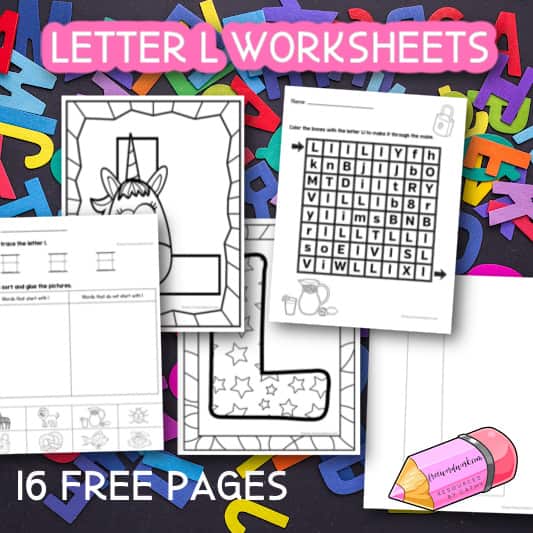 Download this free set of 16 Letter L Worksheets for specific letter practice in your classroom or homeschool.