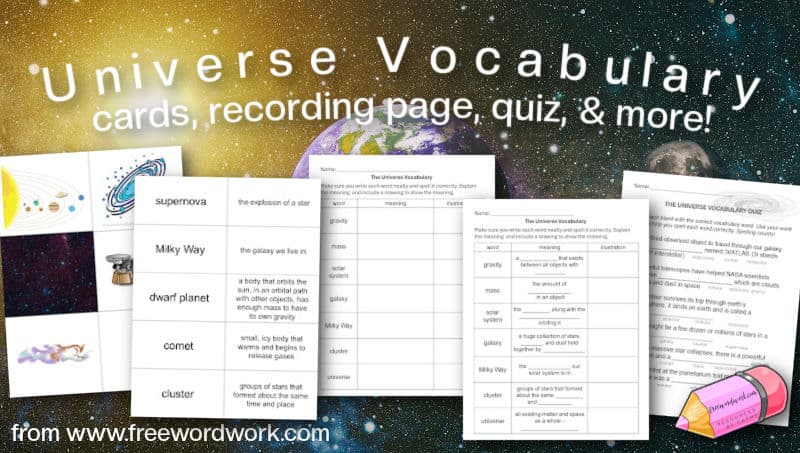 This set includes multiple resources for you to use when introducing, teaching, and testing the universe vocabulary words.